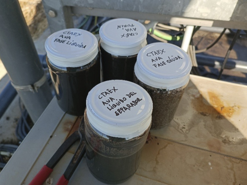 El día 13 de junio, el personal de SOLANO VETERINARIA, IBERCOM e IMASDE, visitaron junto con personal técnico de CTAEX, la granja de Palazuelos (AVA) y el almendral colindante propiedad del miembro beneficiario CEMENTOS HIDALGO, para establecer sobre el terreno las bases de la prueba experimental de fertirrigación de los almendros con la fase líquida del purín y la recogida de muestras de las fracciones sólida y líquida para su caracterización como fertilizante.